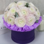 17 белых ранункулюсов в шляпной коробке в Брянске