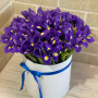45 фиолетовых ирисов в шляпной коробке в Брянске
