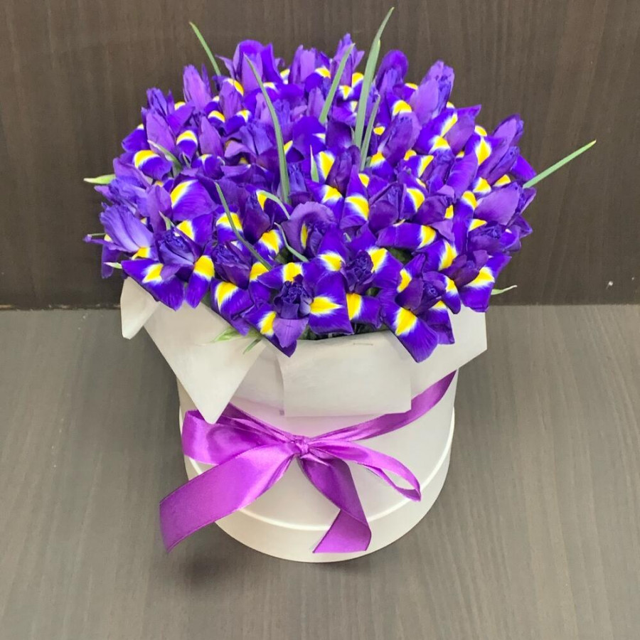 51 фиолетовый ирис в шляпной коробке в Брянске