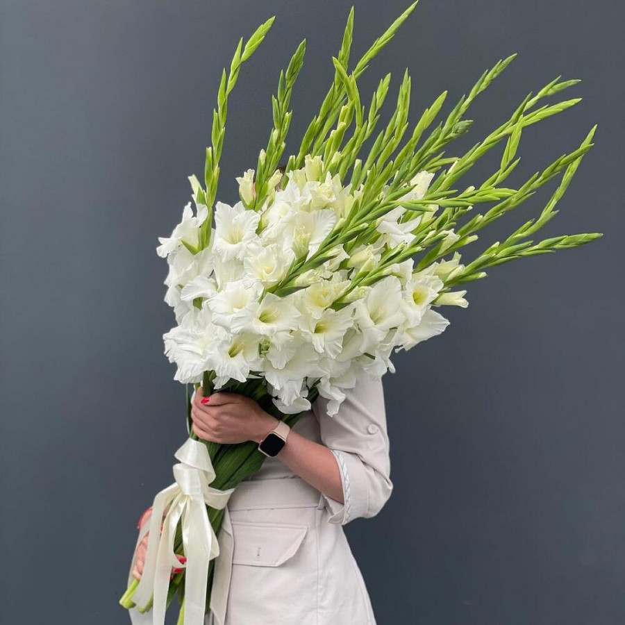 Букет из 19 белых гладиолусов под ленту в Брянске