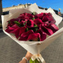 На фото букет из 25 красных калл. В составе: калла 25 шт, крафт-бумага 1 шт, вероника 1 шт, . Все цветы свежие и ароматные, букет красиво оформлен и отлично подходит для подарка. Доступна доставка цветов или самовывоз.