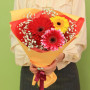 На фото букет из 3 гербер с гипсофилой. В составе: гербера 3 шт, гипсофила 2 шт, крафт-бумага 1 шт, атласная лента 1 шт, . Все цветы свежие и ароматные, букет красиво оформлен и отлично подходит для подарка. Доступна доставка цветов или самовывоз.