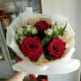 Букет из трех красных роз и белой альстромерии станет прекрасным подарком для тех, кто любит красоту и оригинальность. Красные розы символизируют страсть и любовь, а белая альстромерия добавляет букету свежести и легкости. Такой букет идеально подойдет для романтического свидания, дня рождения или свадьбы.