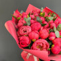 На фото букет из 35 коралловых пионов. В составе: пион 35 шт, крафт-бумага 1 шт, атласная лента 1 шт, . Все цветы свежие и ароматные, букет красиво оформлен и отлично подходит для подарка. Доступна доставка цветов или самовывоз.