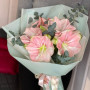 На фото букет из 7 розовых амариллисов. В составе: амариллисы 7 шт, эвкалипт 2 шт, крафт-бумага 1 шт, атласная лента 1 шт, . Все цветы свежие и ароматные, букет красиво оформлен и отлично подходит для подарка. Доступна доставка цветов или самовывоз.