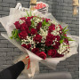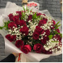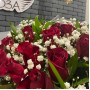 На фото букет из красных роз и белой гипсофилы. В составе: роза (кения) 35 шт, гипсофила 8 шт, крафт-бумага 1 шт, атласная лента 1 шт, . Все цветы свежие и ароматные, букет красиво оформлен и отлично подходит для подарка. Доступна доставка цветов или самовывоз.