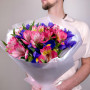 Букет из синих ирисов из розовых альстромерий в Брянске