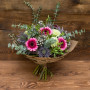 Мечтаете сделать приятный сюрприз? Закажите композицию «Изящный комплимент». Это превосходное сочетание соцветий герберы, элегантных гвоздик, обилия зеленых декорирующих элементов – веточек эвкалипта, писташи. Яркий, привлекательный, свежий и ароматный букет станет небанальным признанием в теплых чувствах, ненавязчивым признанием в любви. Привлекательная цена и симпатичная упаковка делают данный букет крайне популярным.