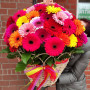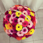 Композиция из 101 разноцветной герберы в корзине в Брянске