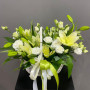 Корзина с белыми лилиями и эустомами в Брянске