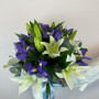 Букет из белых лилий с синими ирисами в Брянске