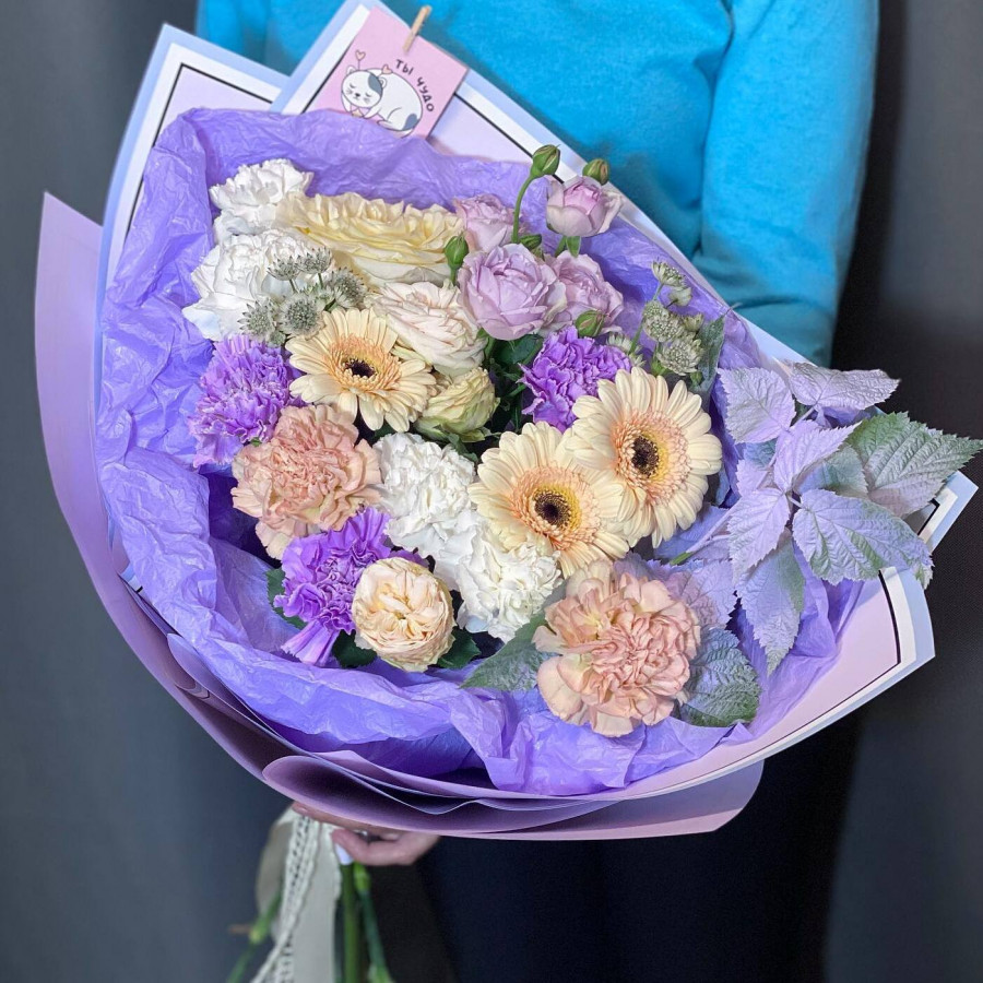 Перед выездом курьера пришлём фото свежесобранного букета, чтобы вы были спокойны